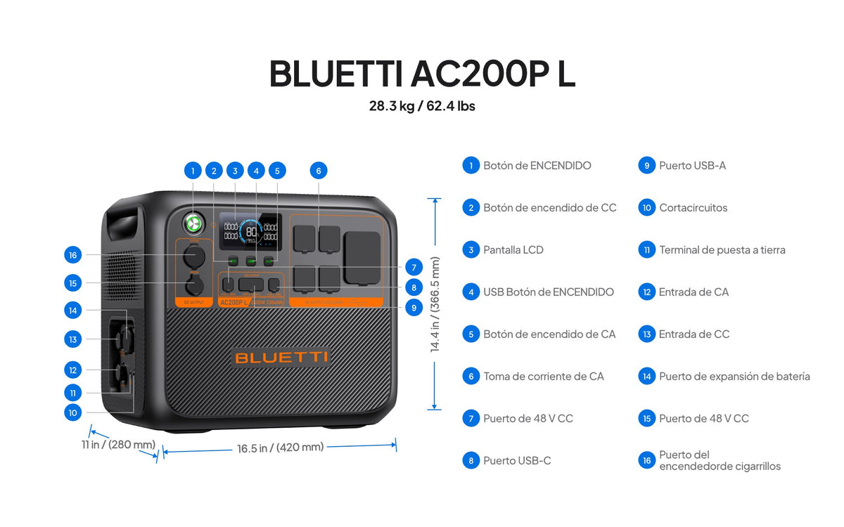 • BLUETTI AC200PL Estación de energía portátil | 2,400W 2,304Wh