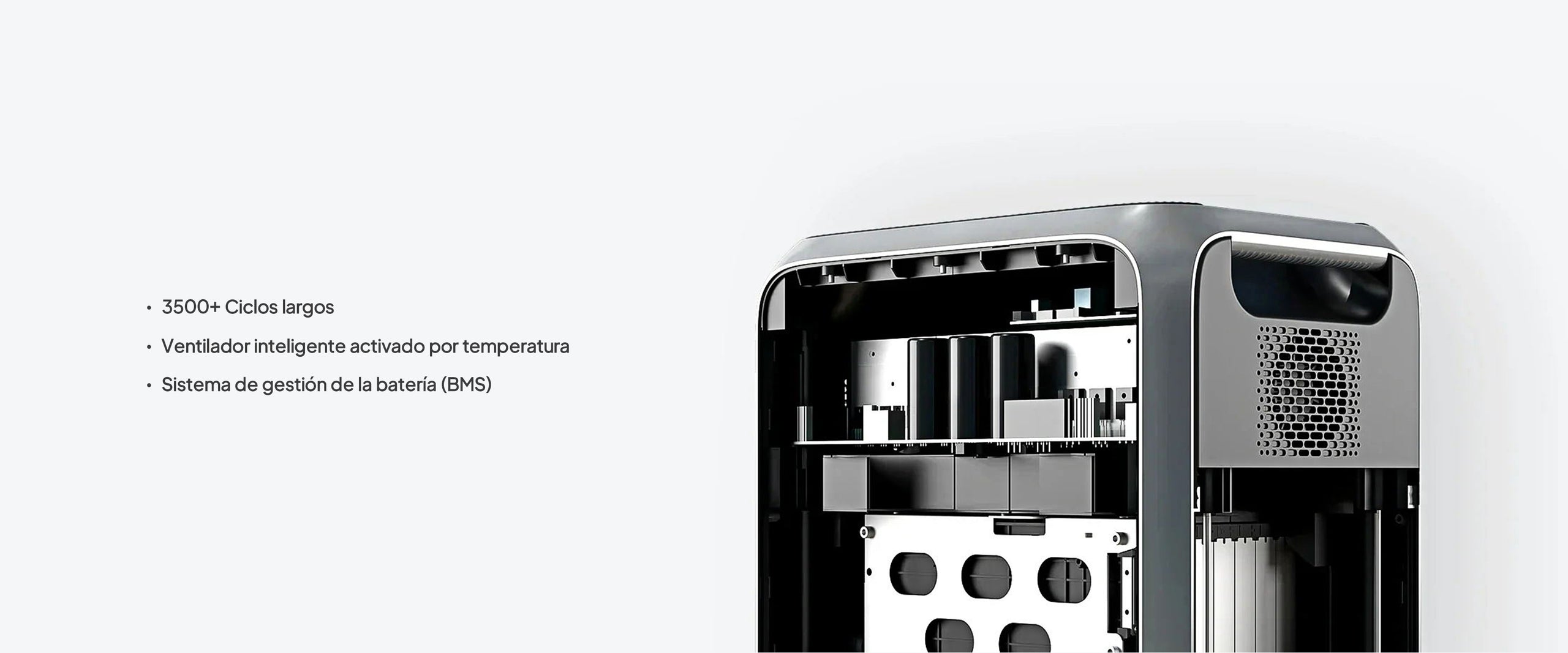 Tiene un modo de arranque de ventilador inteligente. los ventiladores se encienden / apagan en función de la temperatura interna y las cargas. → carga < 1500 W, Máx.45 dB; load>1500 W,Máx.54 dB