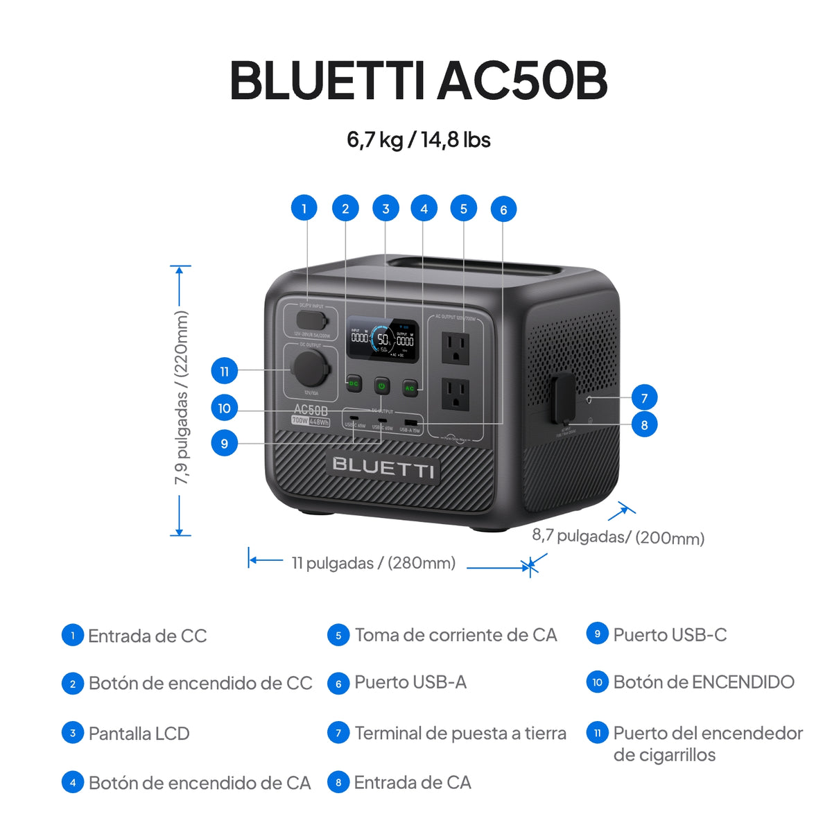 • BLUETTI AC50B Estación de energía portátil | 700 W 448 Wh