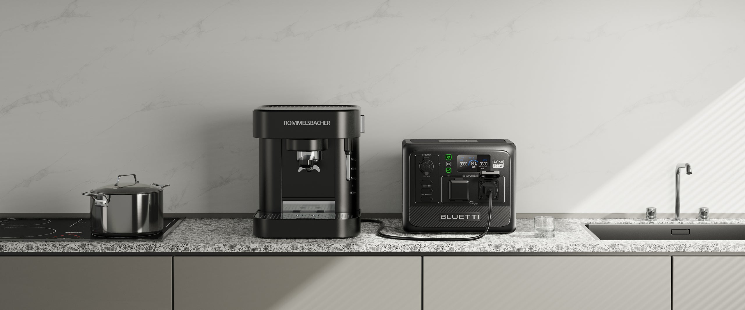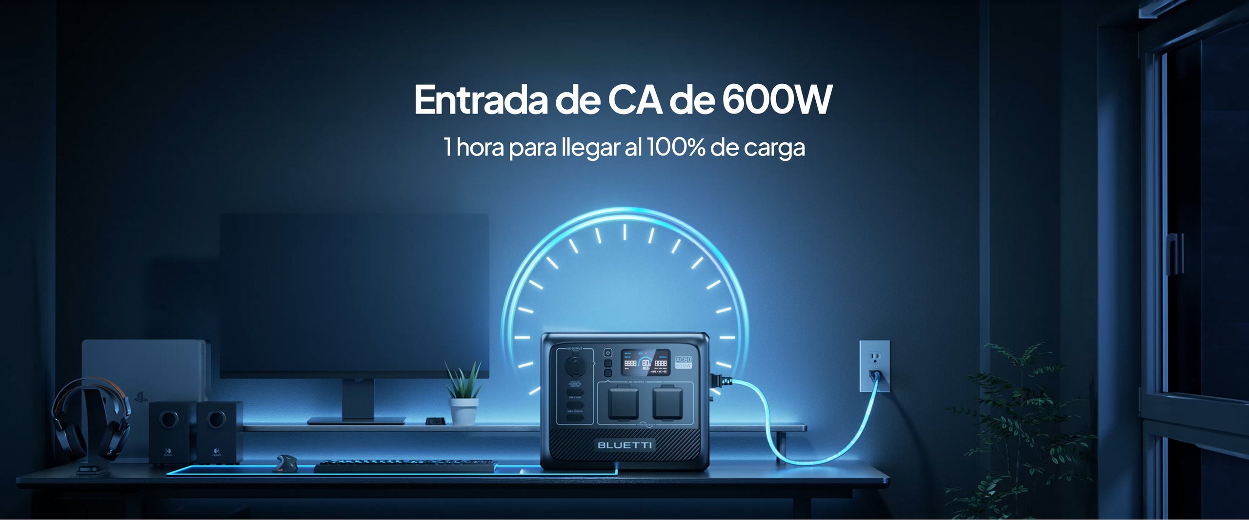 El AC60 admite una entrada de potencia máxima de 600 W. Conéctalo a una toma de pared, activa el modo de carga Turbo en la aplicación BLUETTI y puedes cargarlo en 1.2-1.7 horas.